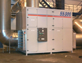 of chilled water with inverter driven screw compressors optimized for R134a, axial-flow fans